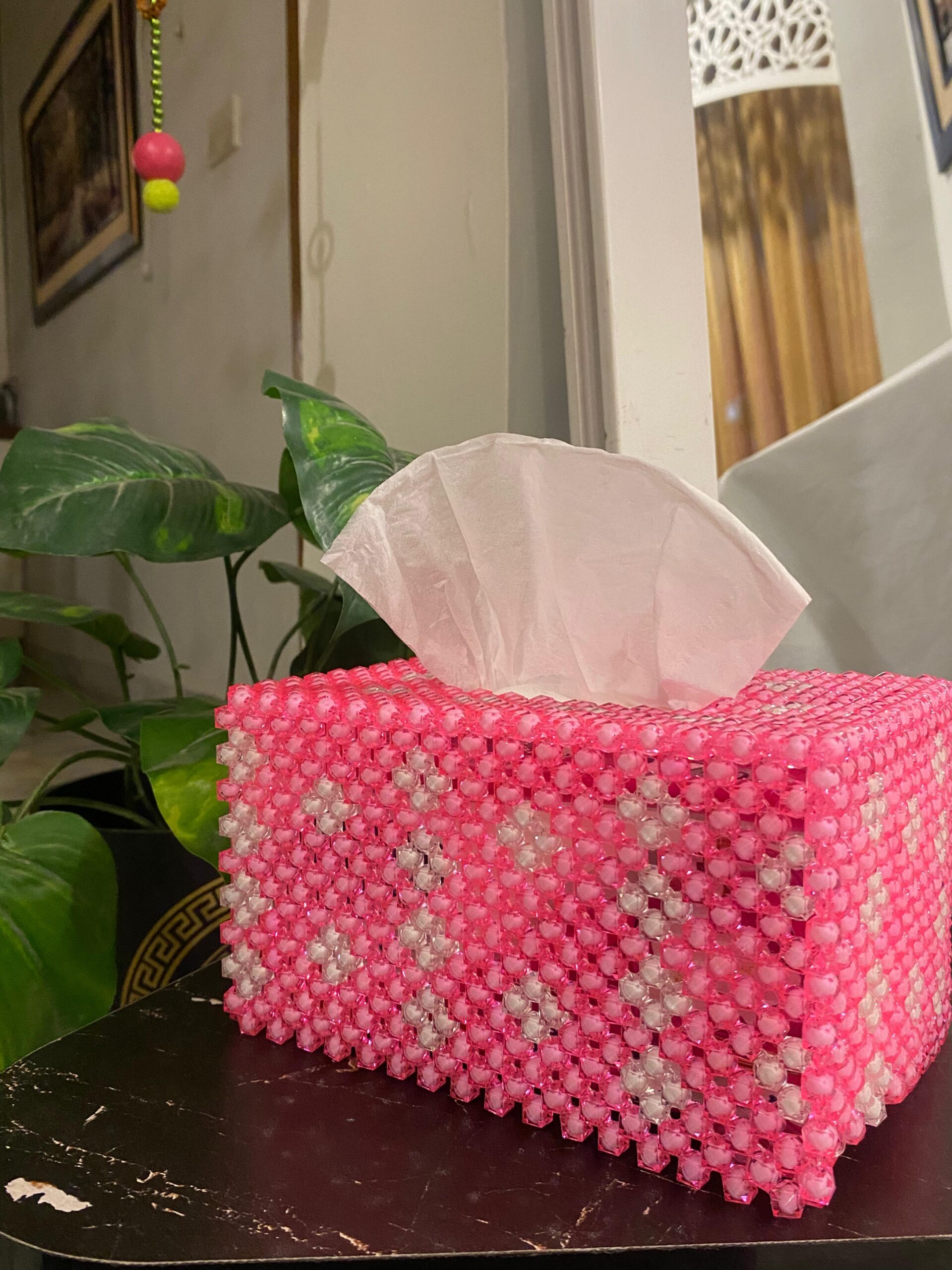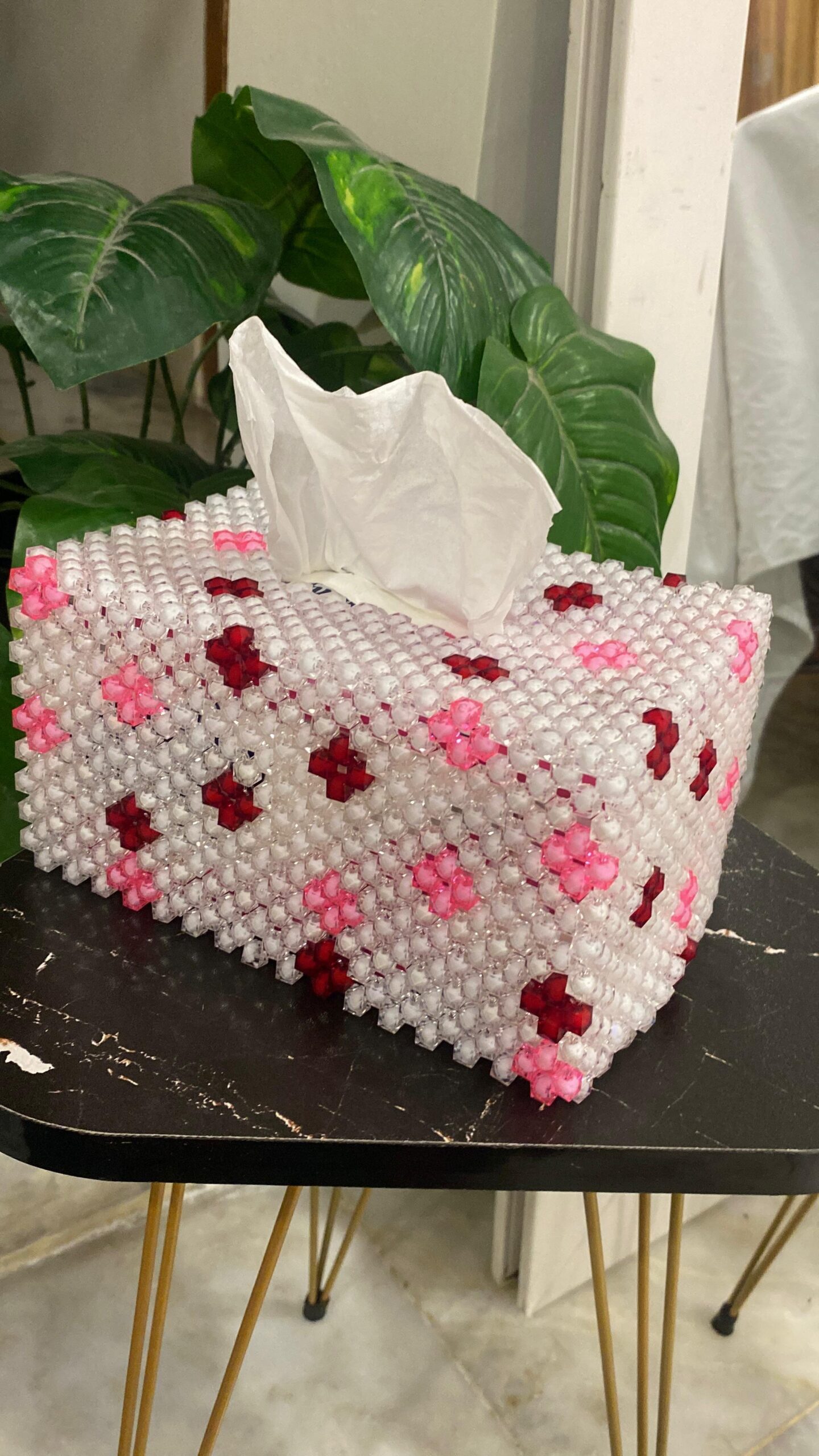 Upgrade your home décor with this handmade beaded tissue box cover, designed with elegant pearl beads for a premium look. A perfect addition to your living room, bedroom, car, or office. Makes a beautiful gift for housewarming, wedding, or festive occasions.